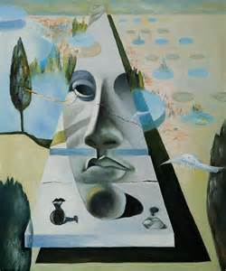 He sometimes believed his artistic vision to be premonitions of war. In paranoiac visage, a stone hut forms the face, the trees transform into bushy hair and seated people become the eyes, nose and mouth.. In spanish la cara de la guerra) (1940) is a painting by the spanish surrealist salvador dal í.